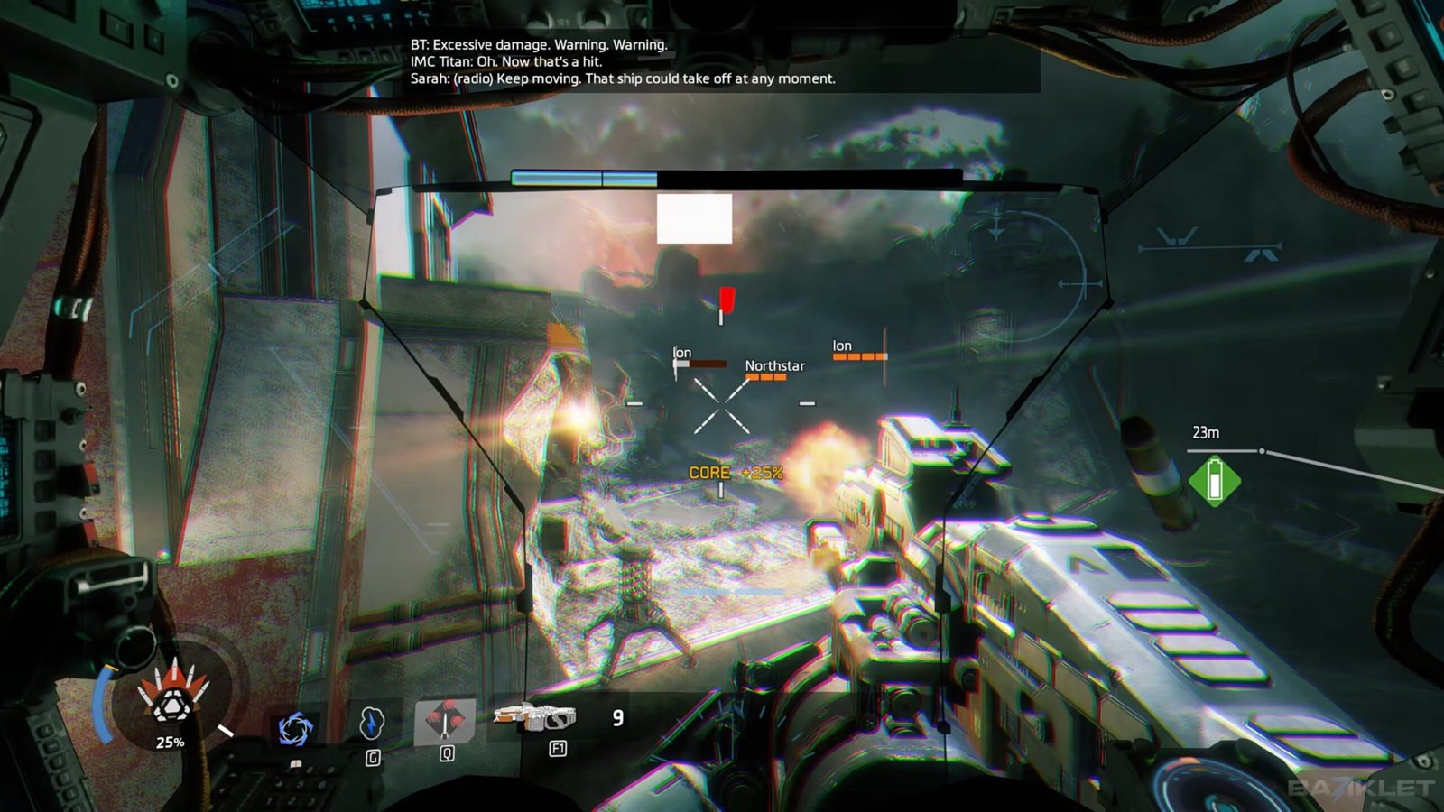 After the briefing, the mission jumps into a dramatic first-person “Titanfall.” Jack Cooper and BT-7274 are launched from the carrier with many other Militia Titans, landing on a hill above the IMC airfield on Typhon. Right away, they face heavy resistance from IMC defenses and turrets. Commander Sarah Briggs leads from the front, guiding and motivating Cooper and the other Pilots. This intense landing sets the fast pace for the mission, and players must quickly adjust to threats coming from all sides.