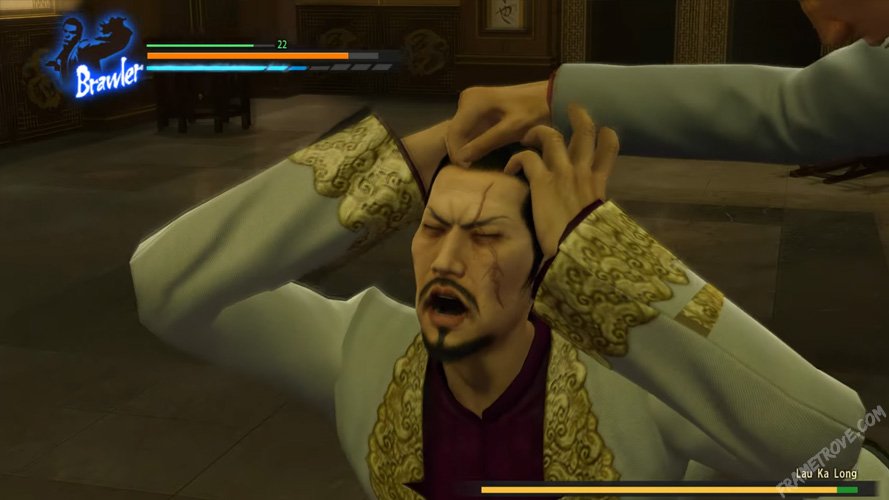The main conflict happens at the Snake Flower Triad’s headquarters, a high-end Chinese restaurant. Kiryu goes up against the Triad leader, Lau Ka Long, in a challenging boss fight with several stages. Lau changes his fighting style as the battle goes on. He starts with a Guan Dao for wide attacks, then uses quick dual Chinese sabers, and finally fights with acrobatic kung-fu moves using only his hands. These battles test Kiryu’s endurance and are a big obstacle in the search for the 10 billion yen pendant.